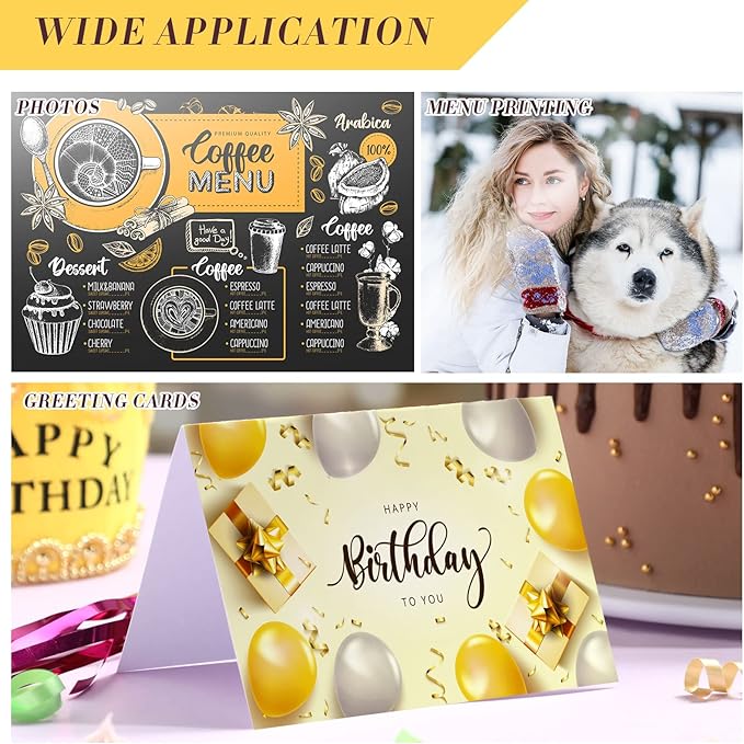 - Quality Material: our card stock printer paper is made of quality fast drying glossy photo paper, which is 200 GSM, featuring a flexible durability, nice strength and printing quality, to provide a good using experience for you