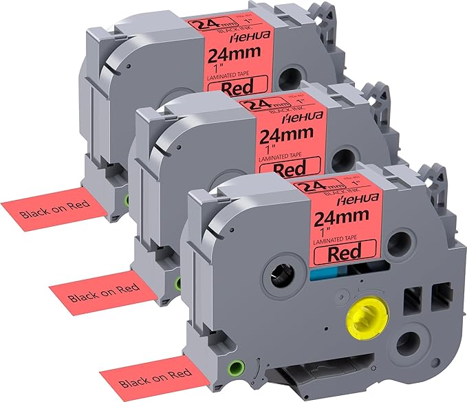 - Size - 1" ( 24mm ) x 26.2' ( 8m ) each 24mm label tape. Color - Black letter on red tape