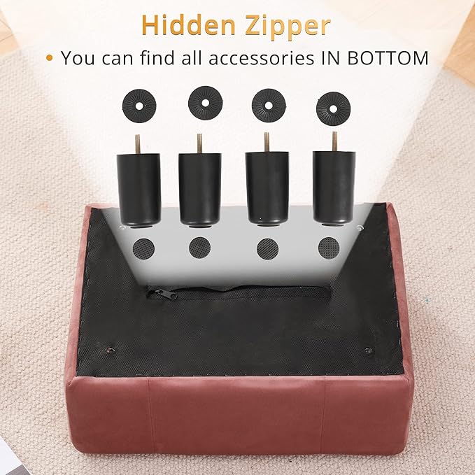- 【ANTI-SLIP】❥❥❥❥❥To prevent slip and scratch in daily use, our foot rest ottoman provide extra felt pads. You can take out pads from hidden zipper area and attach them to the bottom of legs. We care every detail of your using experience.