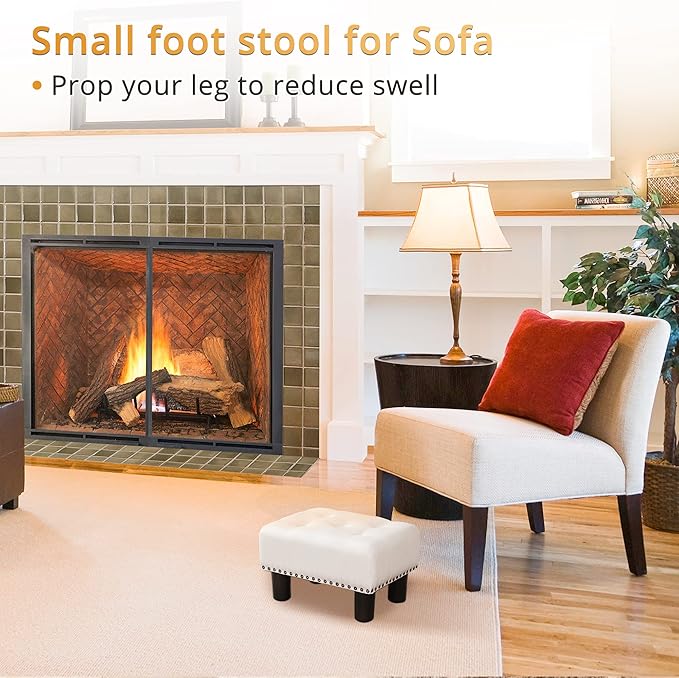 - 【ELEGANT DESIGN】The small ottoman has tufted design on top, which bring elegant and good looking. The surface of this gootstool use soft and skin-friendly fabric, you can touch it to feel comfort and pop your leg on it to reduce swell after daily work.