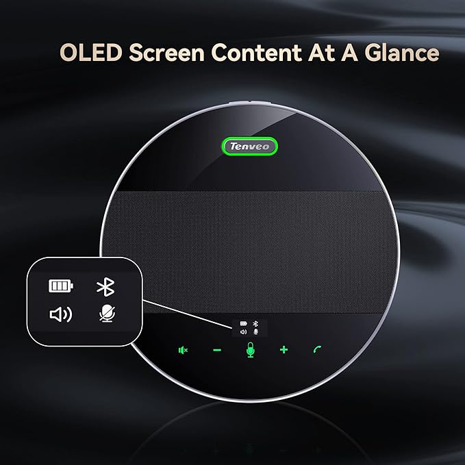 - ๐ใ๐๐ฎ๐ญ๐ฌ๐ญ๐๐ง๐๐ข๐ง๐ ๐๐จ๐ฎ๐ง๐ ๐๐ฎ๐๐ฅ๐ข๐ญ๐ฒใThe Tenveo Conference Speakerphone is embedded with DSP audio processor and high-fidelity speaker and is equipped with intelligent environmental noise-reduction technology, it can capture the key content of the meeting and effectively filters surrounding noise. The built-in echo cancellation automatically improves sound clarity. Meanwhile MagiCall speakerphone uses on-screen touch buttons to keep it compact and stylish. The OLED screen can also display the battery level.