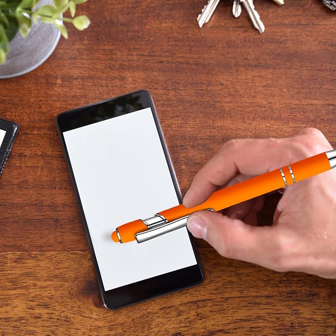 12 Pcs Blue Ink Ballpoint Pen with Stylus Tip, 1.0 mm Metal Pen Stylus Pen for Touch Screens, 2 in 1 Thank You Pen Gift for Friends, Colleagues, Coworker, Office, Family (Orange)