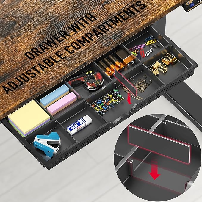 SHW 48-Inch Electric Height Adjustable Standing Desk with Drawer, Memory Preset and Cable Management Tray, Rustic Brown