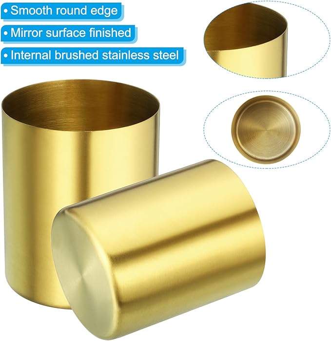 PATIKIL Pencil Holder, 3 Pack Pen Holder for Desk Stainless Steel Pencil Holders Cup Organizer Makeup Brush Holder for Desk Accessories, Golden