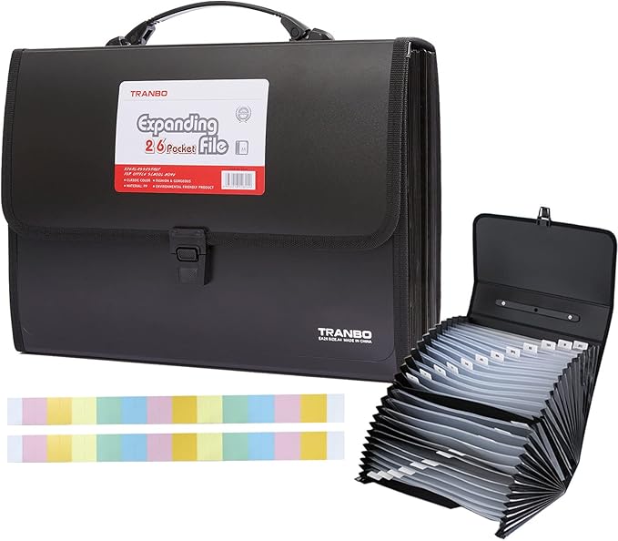 25 Pockets Letter Size/A4 Accordion File Organizer with Handle, TRANBO Expanding File Folder, Expandable Document Paper Organizer for Travel School Office - 1 Pack