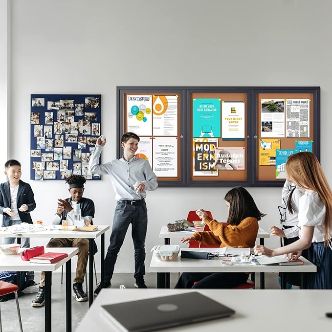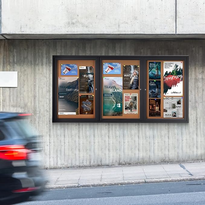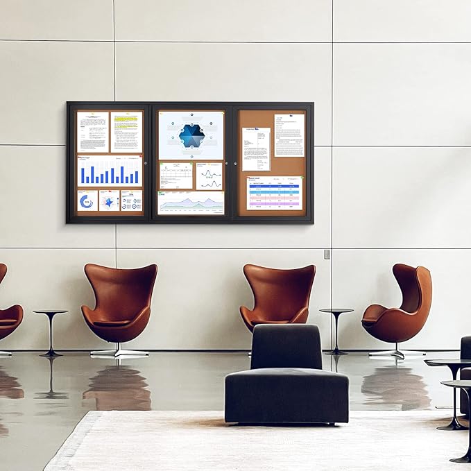 - HIGH-QUALITY MATERIAL:It is made of cork pin board, waterproof aluminum construction, shatter-resistant acrylic door and aluminium-plastic panel