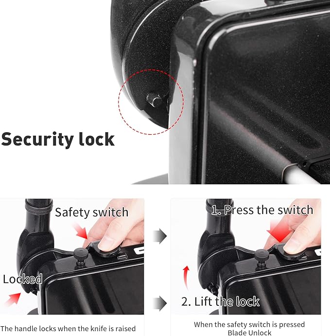- Safety lock and protective cover give you double safety protection. Press the safety lock, the paper cutter can be used. The blue protective cover can not only prevent foreign objects from entering, but also prevent fingers from entering the blade