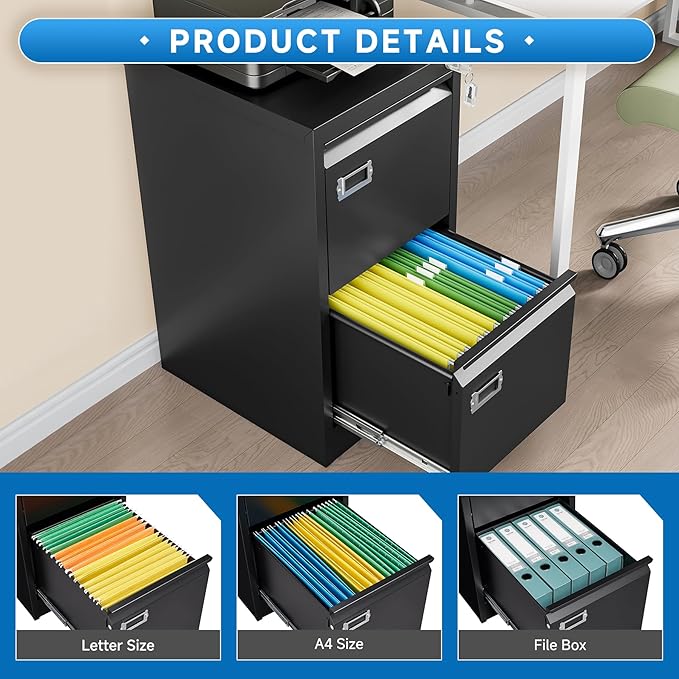 - 【HIGH QUALITY】The vertical file cabinet with all-steel structure is more sturdy and durable. It is suitable for home or office use, providing more convenience for your office environment. The surface of the file cabinet has a smooth coating treatment, which can be waterproof and easier to clean