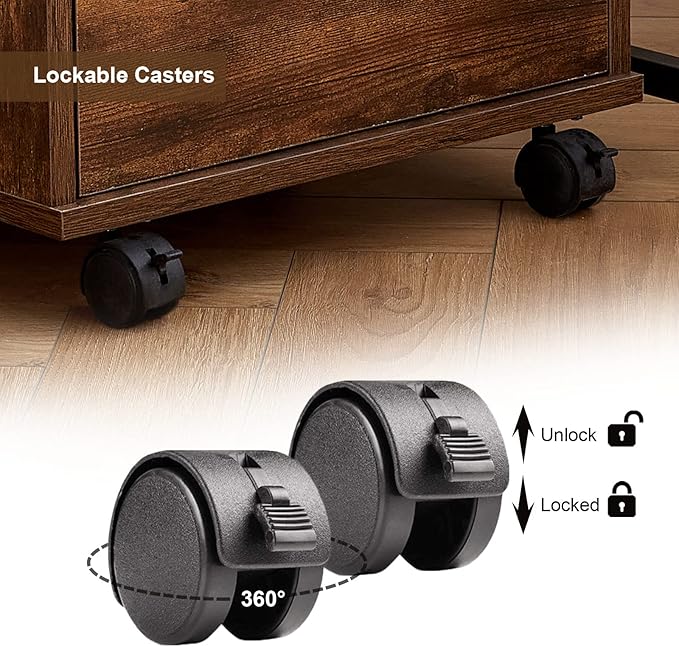 - Effortlessly Mobile with Locking Casters: Features four 360Β° swivel wheels for easy movement anywhere. The two front lockable casters keep the cabinet firmly in place when stationary, preventing unwanted rolling.