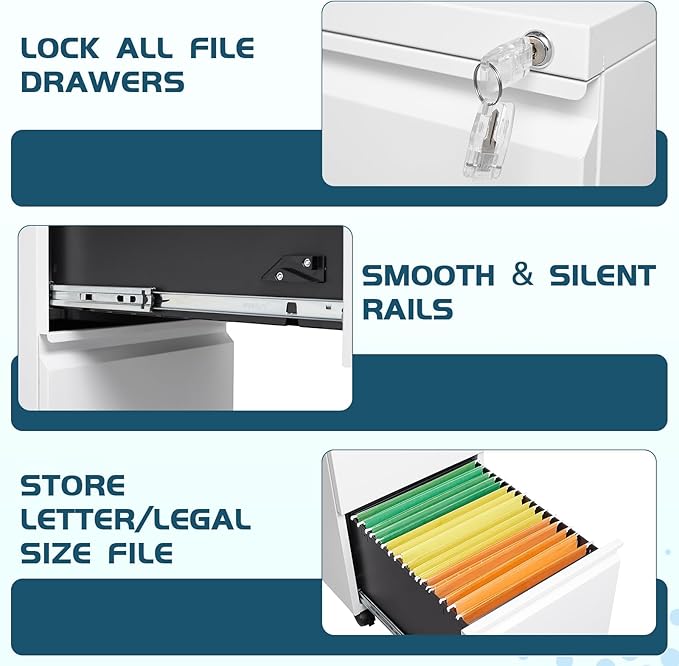 - 【Locking Cabinet for Security】: A lock is set at the top of our file cabinet and is designed to lock all drawers. This helps to keep your sensitive documents secure from prying eyes. You are provided with two keys for the lock.
