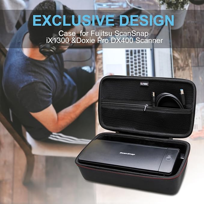 - [Perfect Fit] We've specifically designed this case to fit your Fujitsu ScanSnap iX1300 and Doxie Pro DX400 Scanner . OUTER DIMENSIONS: 13.5" L – 7.9" W – 4.6" H.