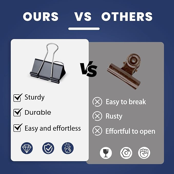- MULTI-FUNCTION: Binder clips can be a useful and versatile tool in offices and kitchens. They can help you keep your papers organized and as chip clips to seal food bags, They are good office supplies and storage tools.