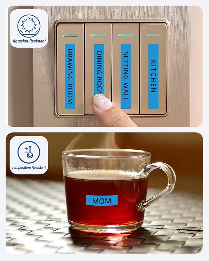 - These compatible for brother label maker tape 12mm 0.47 TZe-531 TZe531 have strong adhesive and no sticky residue when you remove it. The split back design of ptouch label tape 12mm blue tape is very easy to peel off