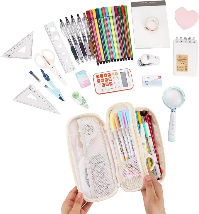 - Large Capacity: The Dimensions is 9.06'' x 4.33'' x 3.54'' This pencil case allows up to 80-100 pens/pencils, 20 cm ruler, pencil sharpener and other stationery gadgets.