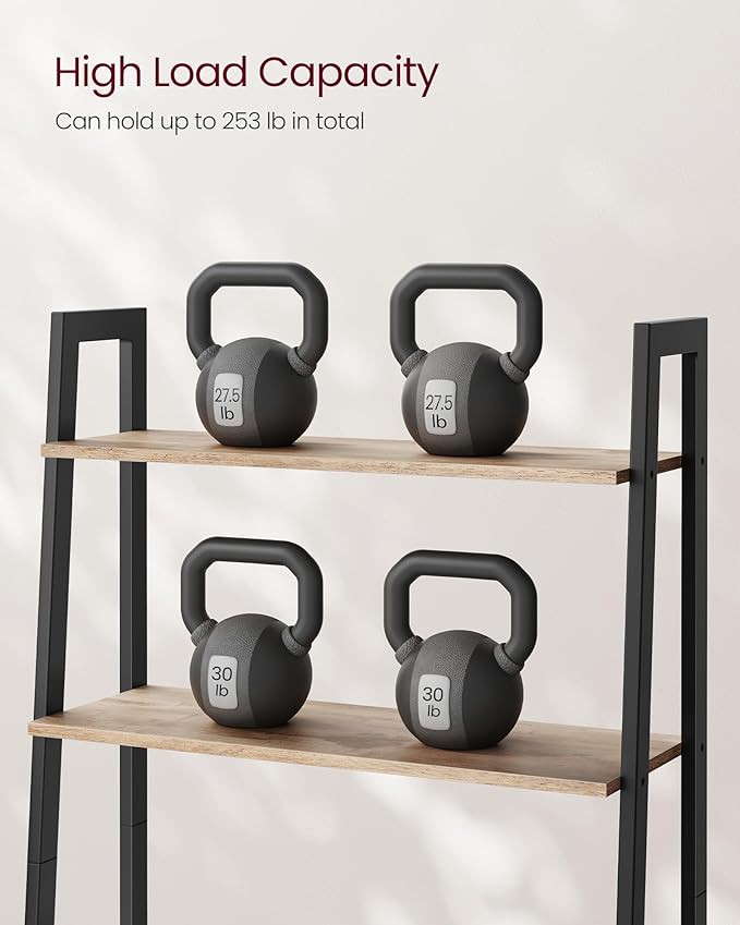 VASAGLE Ladder Shelf, 4-Tier Bookshelf, Storage Rack, Bookcase with Steel Frame, for Living Room, Home Office, Kitchen, Bedroom, Industrial Style, Camel Brown and Ink Black ULLS144B50