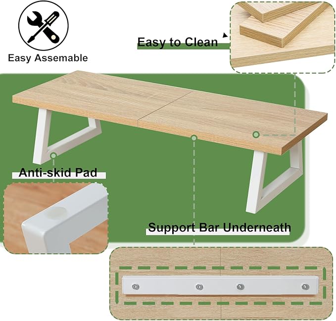 - 【Spacious Wood Surface】The wood top surface area is large and wide enough to hold your monitor/ laptop & docking station, it is smooth, comfortable, and trendy.