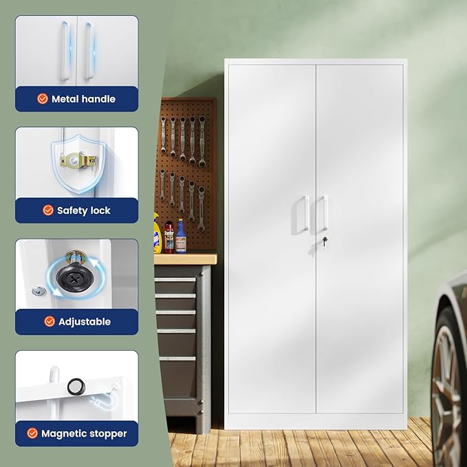 Yizosh Metal Storage Cabinet with Locking Doors and 5 Adjustable Shelves,- 72" Garage Storage White Steel Lockable File Cabinet for Office,Home,Garage