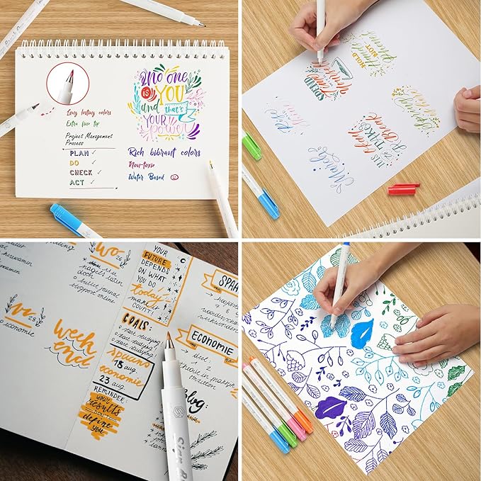 - 💙 【Wide Usage】GC QUILL calligraphy brush pen is great for hand lettering, calligraphy, journaling, drawing, sketching, illustration, signature, design, detail drawing, outlining, doodling, card decoration, note-taking, and more. Create a beautiful gradual or mixed color effect by dipping 1 colored nib onto another colored nib.