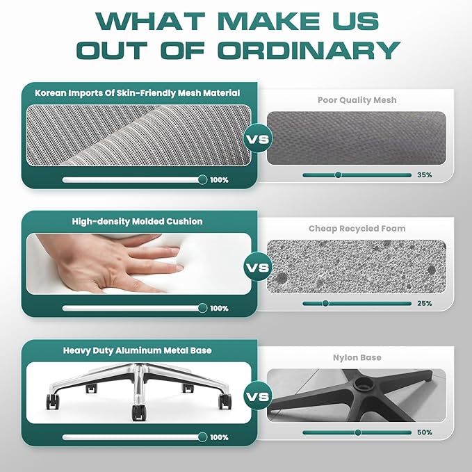 - ⏩VENTILATED MESH OFFICE CHAIR--Adopting high-end breathable mesh fabric imported from Korea with great flexibility and durability, the high-back office chair perfectly fits the curve of your spine and protects the cervical and lumbar spine. In addition, the lumbar support also offers well support for your back