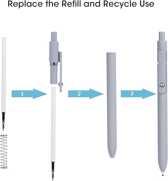 - Quick-Drying Ink Pens:Retractable Rolling Ball Gel Pens with the fade-resistant ink, there’s no need to worry about getting ink on your hands or desk, as it won’t fade, bleed, or smudge.Note: After using the gel pen, it is suggest to lay pen flat or nib face up. This helps protect the pen tip