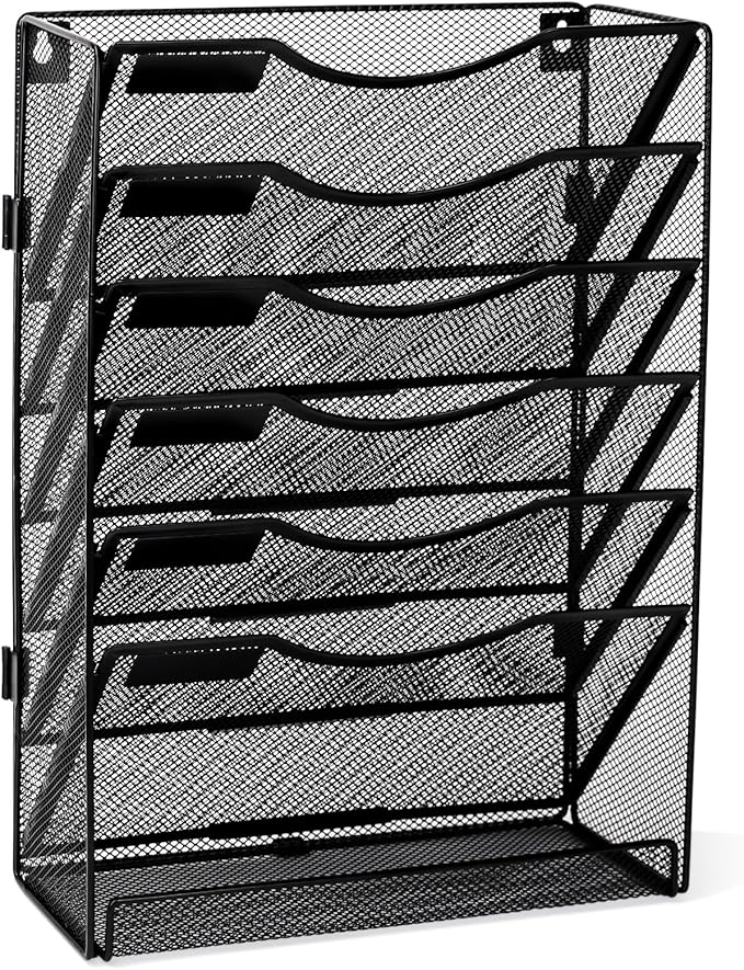 - Metal Mesh Durability: Powder-coated metal file organizer for desk resists rust & oxidation. Holds 5lbs/slot with open-grid dust prevention. Ideal for high-traffic offices.