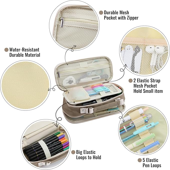 • Unique Designs - Fashionable colors and appearance, with three-dimensional and layered structure design. Two double-zipper, interior mesh pockets, and different compartments are designed for this pencil bag, it can hold pretty much everything a student needs. With rivet reinforcement handle strap design, not easy to break; and thickened handle strap for comfortable use and easy to carry.
