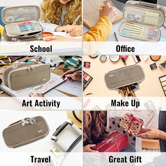 • Easy for Organizing - Easy to separate and organize your different items. Main compartment and inner pockets for your pencils, pens, markers, and more. Multiple small slip pockets can keep important small notes, cards, and tickets In an easy-to-view compartment. It's a great gift for boys and girls, youngers and adults, students, teachers, writers, and artists for graduation, birthday present, or back to school or travel supplies.