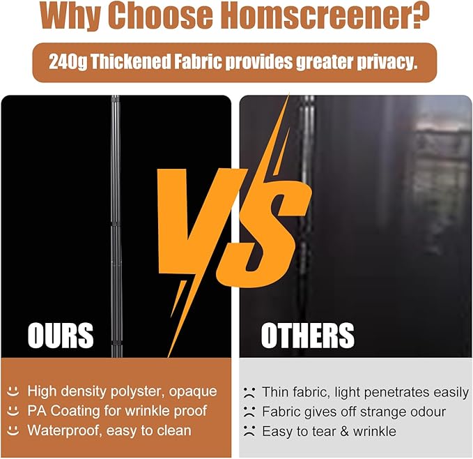 - Upgraded & Long service life: The room divider frame is made from Ο20mm steel tubes with frosted coating to resist corrosion and rust. The 240gsm thicker cloth provides superior concealment and is impervious to light. The PA coating makes the polyster fabric wrinkle-proof and tear-proof. The upgraded room divider is easy to clean, just wipe gently with a cloth