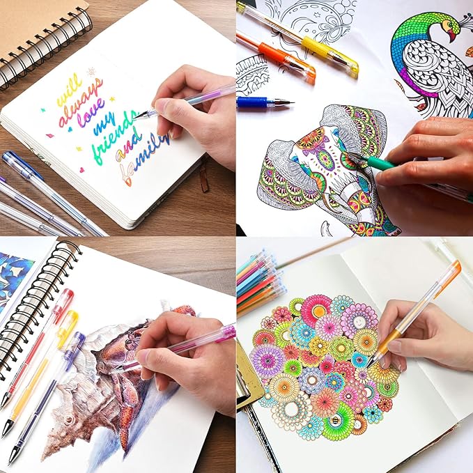 - 【 EASY TO GRIP】With a comfortable grip on each fine point gel pens, you will easily continue all your projects without suffering from fatigue. Now you can write, draw and color when you're on the road, at home or wherever you feel inspired to get those creative juices flowing.