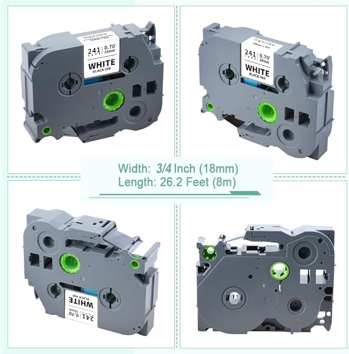 - Package Content: 10-Pack 18mm label tape compatible with Brother Tze241 Tze-241 Tz 241 Tz241 Tz-241 3/4" p touch label tze tz tape 18mm 0.7" Laminated White. Size: 3/4 inch (18mm 0.7") x 26.2 feet (8m). Color: Black on White