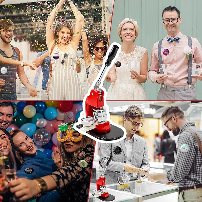 - 【WIDE APPLICATION】The button maker machine multiple sizes kit comes with multiple sizes of button-model, so you can freely change the button-model according to your needs. This button maker machine is suitable for parties, sports events, community events to make commemorative medals. Pin maker machine is suitable for making diy pins buttons, corsages, mirrors, keychains, bottle openers, etc