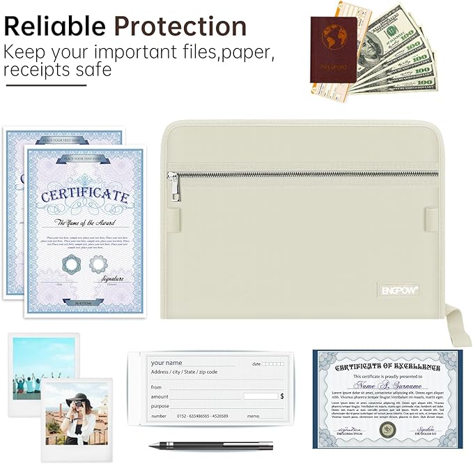 - Innovative Humanized Design: Design with a carrying strap for carrying everything you needed easily. Featuring a double zipper for convenient opening and closing,you won't have to worry about losing any important documents. The included colorful labels make categorizing your files effortless. The fireproof expanding file folder is suitable for business, travel, office, school, home storage, you can be 100% sure that your important documents are in a safe place.