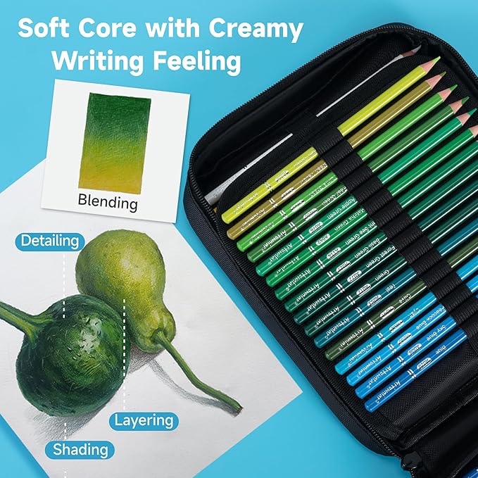 - Portable Travel Zipper Case & Perfect Gift: Art pencil storage case has 72 slots for every coloring pencil to keep organized and protected. Ideal gift box for advanced artists, kids, teens, children, art students, teenagers, beginners, starters, boys , girls professionals or colorists on Christmas, Thanksgiving and Birthdays.