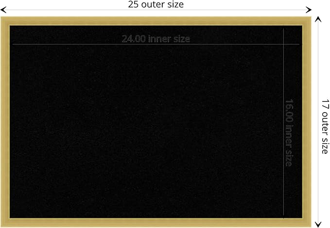 - DIMENSIONS: The overall size of this framed corkboard measures 25 in. x 17 in., including the frame. Its functional cork board area measures 24 in. x 16 in.
