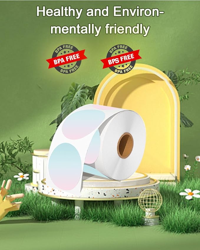 - [Specifications]: Round thermal labels with the size: 2" circle (600 Labels/Roll, 1 Roll,Gradient),Paper tube diameter:0.98"(25mm)