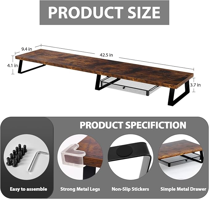 - Easy to Assemble: The board and frame of our monitor stand riser are meticulously designed with pre-drilled holes, ensuring effortless installation. We have included all the necessary tools, parts, and detailed instructions in the package, making the installation process a breeze. With our user-friendly instructions, anyone can easily set up the monitor stand in just 4 minutes