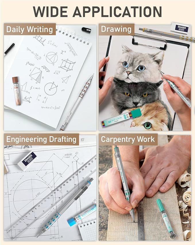 - Ideal Gift for Professionals: A great mechanical pencil set for artists, professionals such as engineers, technical, CAD drafting, teachers and students. Well made leather storage pouch keeps organized and portable