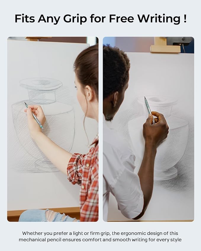 - Sleek Design: Full metal hexahedral barrel , house an adjustable hardness indicator, slim metallic mesh grip inlaid with comfortable rubber pads.Ideal weight balance for fatigue-free writing and drawing