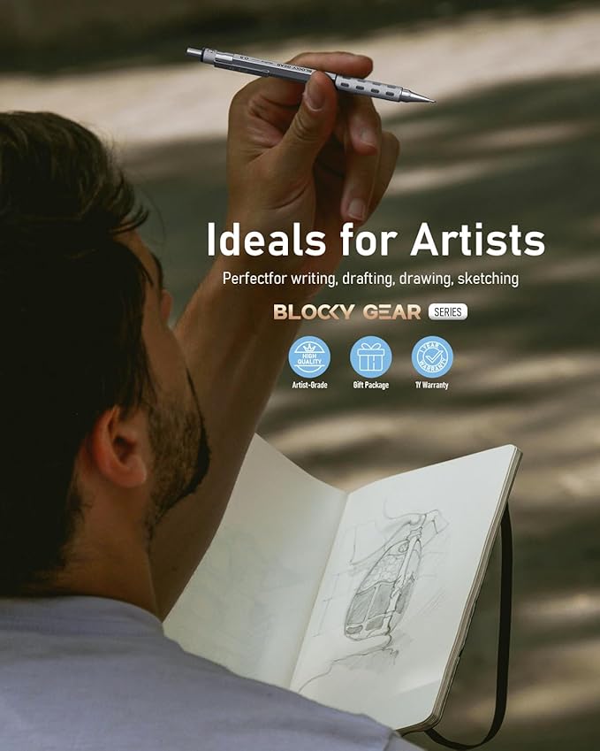 Nicpro Blocky Gear 0.5 mm Mechanical Pencil Set in Case, Metal Pencil with Lead Refills, Eraser for Professional & Adult Art Writing Drafting Drawing