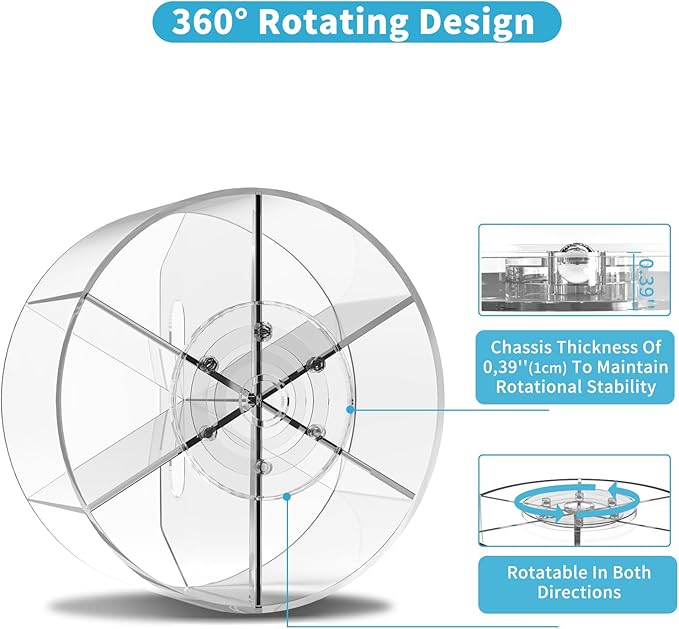 - Clear Spinning Desk Organizer: Wawocs rotating acrylic clear desk top organizer is not only suitable for your own use but also a great organizer for kids partners family friends teachers business partners; the acrylic storage organizer is delicate and durable, ideal for desks workstations podiums dressing tables