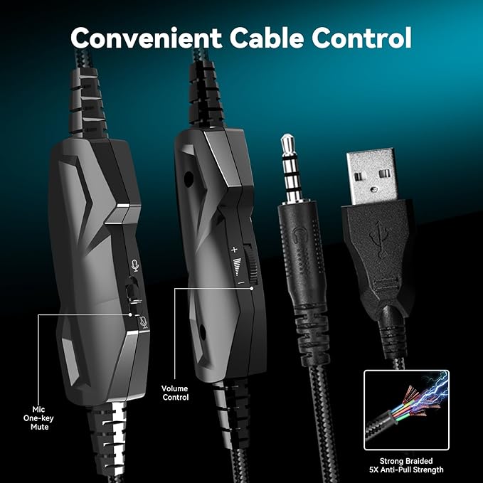 - 【Professional Gaming Headset】Gaming headphones with 6.5ft high tensile strength, anti-tangle braided cable, rotary volume control and button microphone mute.