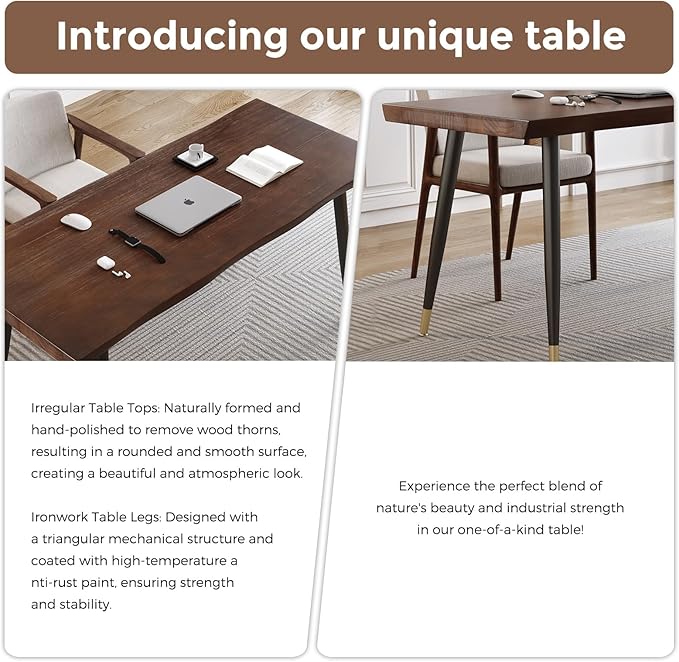 - 【Contemporary Elegance】Embrace sophistication with our stylish solid wood desktop paired with reliable metal legs, providing unwavering stability and supporting up to 300 lbs of static weight.