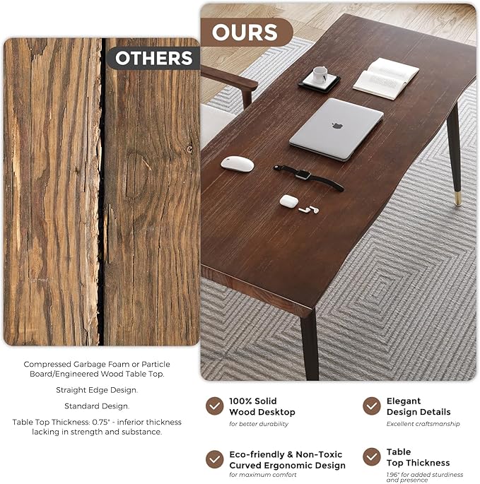- 【Crafted with Precision】Experience the perfect blend of aesthetic beauty and practicality with our 100% solid wood office desk, featuring a unique angled structure for enhanced stability and style.