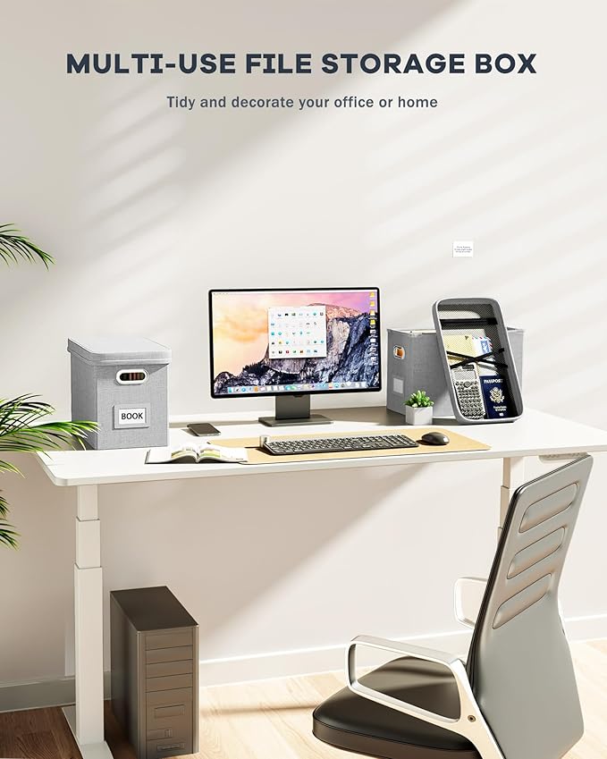 - 【Extra Mesh Bag on Lid】Grey letter size file organizer box has an extra mesh pocket on lid which can store little things such as pens, invoices, papers, scissors,etc. With more storage space design, more efficient storage of documents and items.