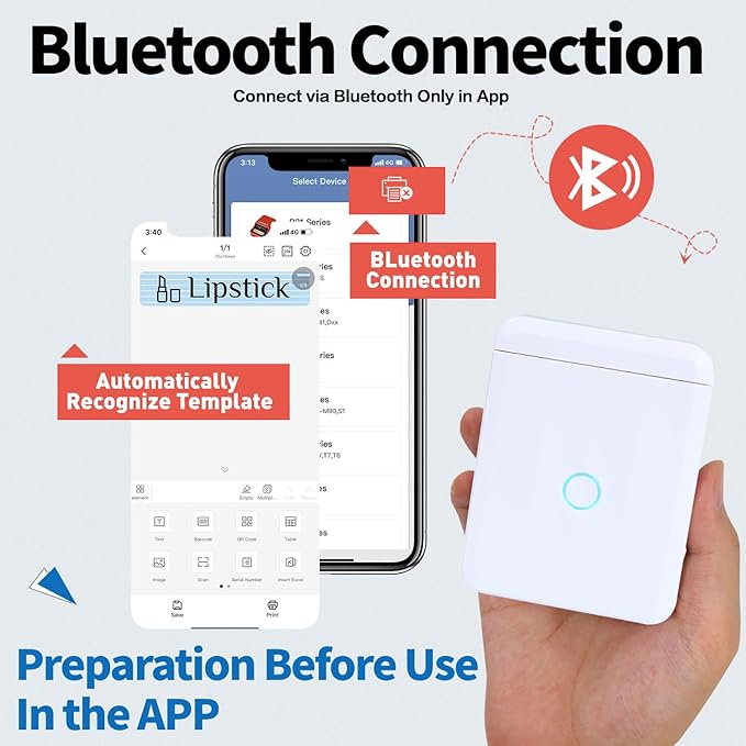 - 【Save Money】 - Bluetooth Label Printer with direct thermal technology, don't require ink, toner, or ribbons. This inkless label printer lower cost compared to inkjet printers. A variety of colors and sizes Labels to choose in our store.