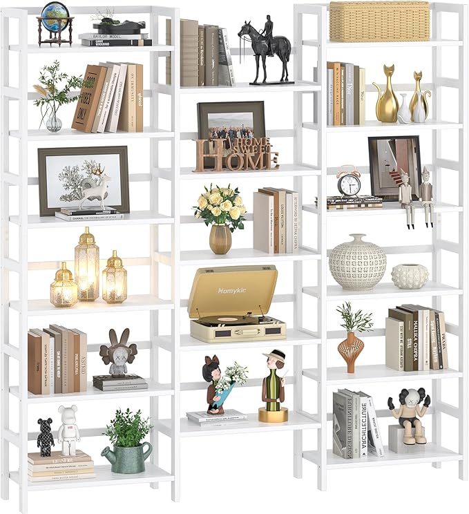 - Extra Large Storage Space: If you are a collectibles lover or a bookworm, donโt miss this affordable and practical bookshelf. Featuring 17 open shelves, this 6-tier triple wide bookcase provides ample storage space for books, decorations, collectibles, potted plants, photo frames, and more. The open design enables you to fetch items with ease. Each layer can hold up to 44 lbs, for a total weight capacity of 748 lbs. Bookshelf measures 61.42" W x 9.84" D x 71.38" H.