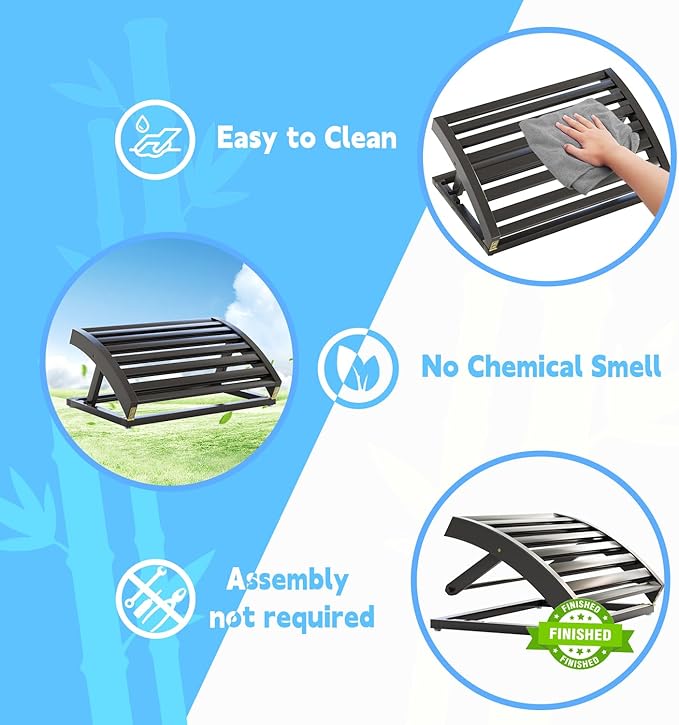 - No Smell & Easy to Clean: The footrest is constructed from bamboo and has no smell, wipe it with wet towel, then air dry