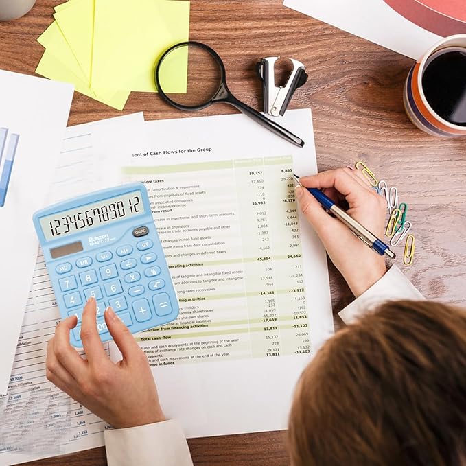 - Perfect blue Office Supplies, This blue calculator is designed for many occasions, business, office, home, basic budgeting, school, and more. Use it to assist your personal finance or just a quick calculation session. You can also send them as practical gifts to friends, students and more.