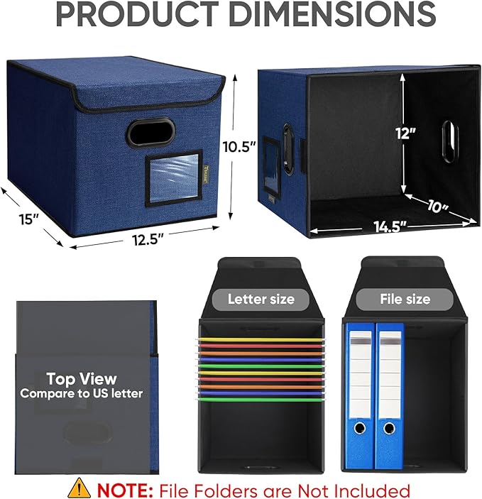 - [OPTIMIZED DESIGN] Designed with convenience in mind, our file storage box helps to elevate your efficiency and organization. The transparent label slot allows for quick identification of the contents stored inside the box. The collapsible design and sturdy handles ensure effortless storage and movement, making it convenient and easy to use.