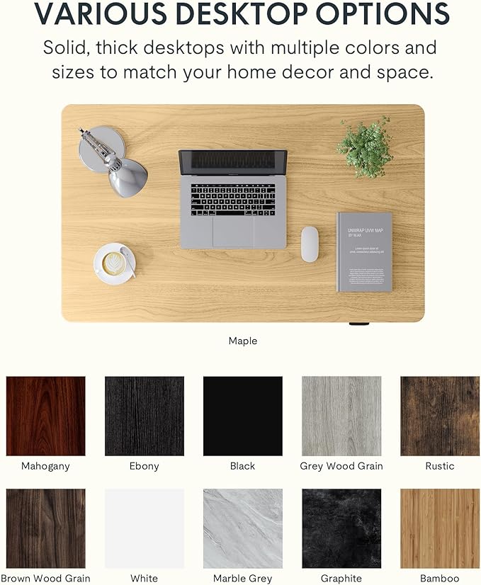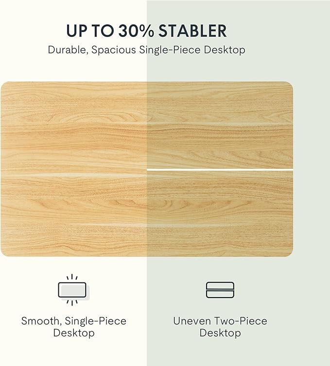 - SPACIOUS ONE-PIECE DESKTOP: Enjoy a sleek, seamless desktop made of FSC-Certified wood. Its smooth surface not only elevates the look of your workspace but also provides a stronger, more stable structure than spliced tabletops.